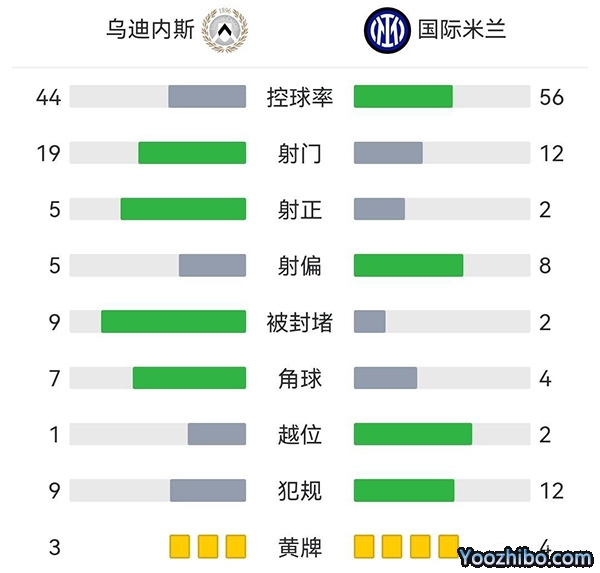全场比赛结束,国际米兰1-3乌迪内斯。