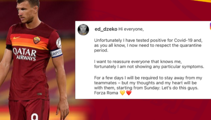 哲科在社交媒体中写道:“很不幸我的新冠检测呈阳性,大家都应该知道,我现在必须进行防疫隔离。我想让大家都放心,很幸运目前我没有出现任何症状。接下来的一段时间我将与我的队友们保持距离,但是我的心会一直与他们同在。那么伙计们从这个周末开始加油吧。罗马加油!”