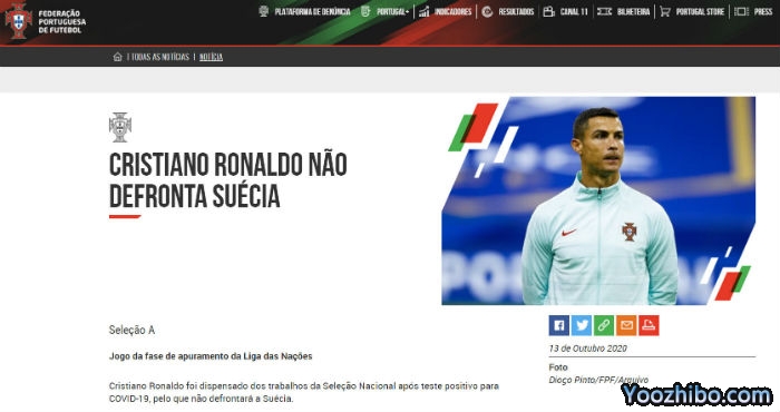 葡萄牙官方:C罗确诊新冠检测结果为阳性 已被隔离!