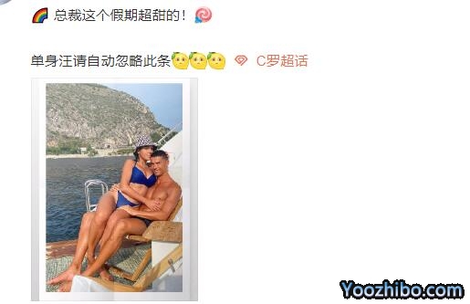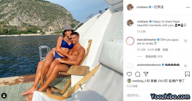 C罗今天则在社交媒体上晒出了自己怀抱女友乔治娜在游艇上度假的照片,着实给球迷秀了一把恩爱,他写到:“很开心能把这些美丽的瞬间分享给你们。”