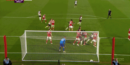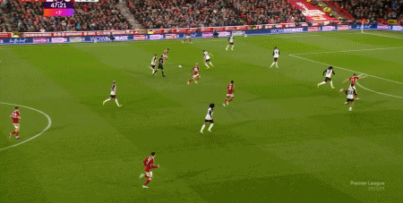 第45+3分钟,达尼洛助攻,吉布斯-怀特破门,诺丁汉森林3-0富勒姆