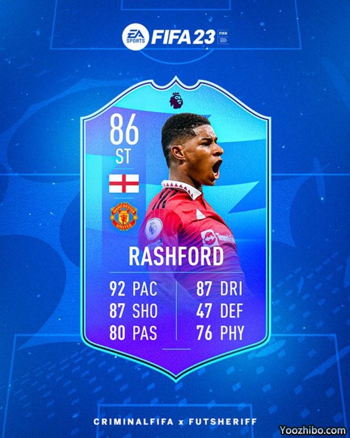 根据惯例,EA Sports将在其知名足球游戏「FIFA23」中为当选英超最佳球员的选手制作「SBC卡包」。他们先于英超公布了拉什福德是9月最佳球员的结果。此外,在英超最佳球员卡片中,拉什福德的位置将从左边锋改为中锋,因为他在9月的两场比赛都担任过曼联的中锋。