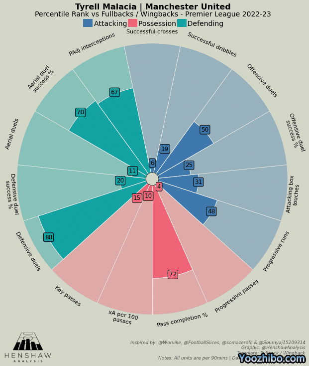 随后的比赛中,马拉西亚一直占据着曼联首发左后卫的位置,搭配利桑德罗·马丁内斯、瓦拉内和迪奥古·达洛,红魔的精神面貌焕然一新。虽然这条防线仍不能称作稳固,但至少在精神层面合格,马拉西亚、马丁内斯和达洛都是激情派球员,瓦拉内则有丰富的经验。前两轮狂丢6球的曼联,接下来4场联赛只丢了两球,对手还包括利物浦和阿森纳,因此防线的数据堪称难能可贵,也是红魔取得连胜的基础。23岁的马拉西亚绝对称不上完美,还非常生涩,球迷未来需要保持耐心,他肯定难免经历起伏,但至少在态度上荷兰边卫绝对合格,无论表现好坏,他勇于跟对手对抗的场面屡见不鲜。马拉西亚说:「我能提供许多能量,我擅长防守,也喜欢进攻,速度快,身体强大,而且我热爱比赛。」举个例子,曼联0-1不敌皇家社会的欧联杯比赛马拉西亚共计81次触球,2次突破成功,2次赢得任意球,他的8次对抗7次取胜,6次夺回球权,并有2次铲球、1次抢断和1次封堵。可以说,曼联虽然输了,但马拉西亚依然没有令人失望。