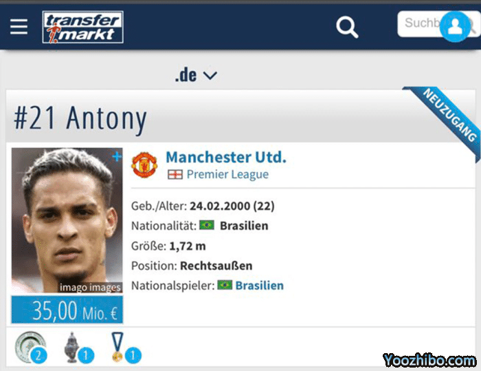 人们已经开始更新传闻,预言曼联会在1月份冬季转会窗继续引进25岁的荷兰中场。然而另一种说法是,滕哈格可能放弃这位昔日阿贾克斯中场核心。德国转会市场网的资料库中,1亿欧元新援安东尼已经被提前列为曼联的21号球员。
