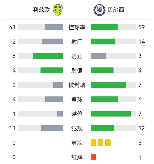 第15分钟,库库雷利亚左路挑传,斯特林得球扣过防守后兜射远角破门,边裁举旗示意斯特林越位在先进球无效。第33分钟,门迪门前处理球稍多,阿伦森抢断成功后轻松打空门得手,利兹联1-0领先切尔西。