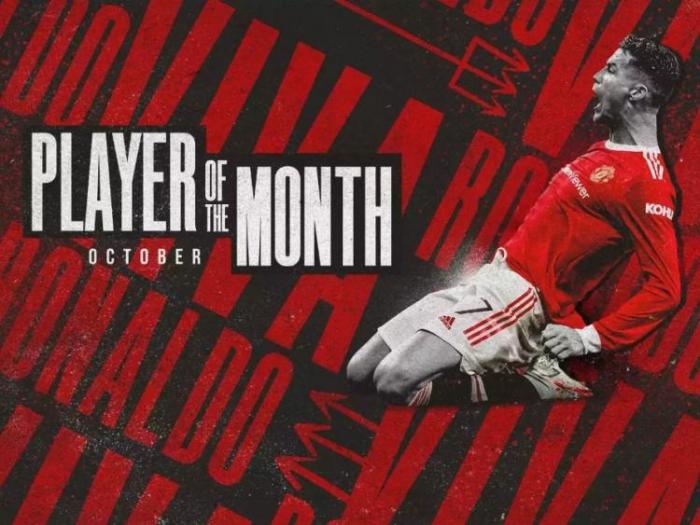 官方:C罗当选曼联10月最佳,连续两月获奖
