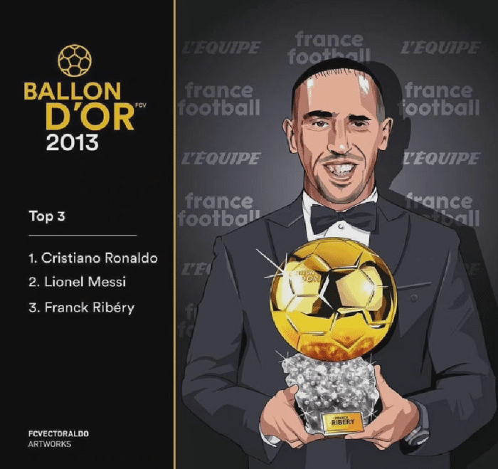 13年的里贝里绝对是现象级的,这个赛季里贝里跟随拜仁拿到了“三冠王”,个人数据也是达到新高,但是在金球奖的投票中,里贝里只拿到了第三,C罗和梅西虽然没有欧冠冠军,但是他们依然是金球奖前两名,不得不说这一届金球奖的评选也难以服众。