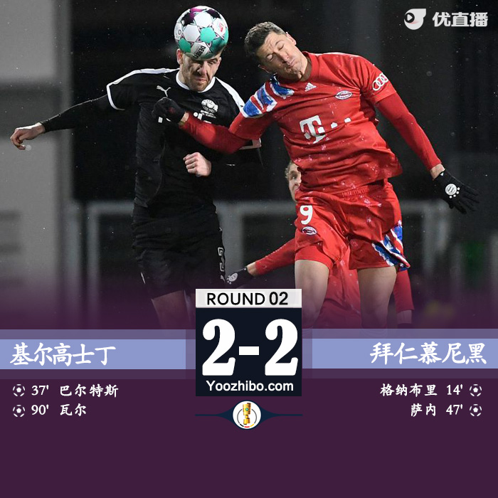 足球直播德国杯 01月14日 德国杯第2轮 基尔高士丁vs拜仁慕尼黑 全场录像及集锦