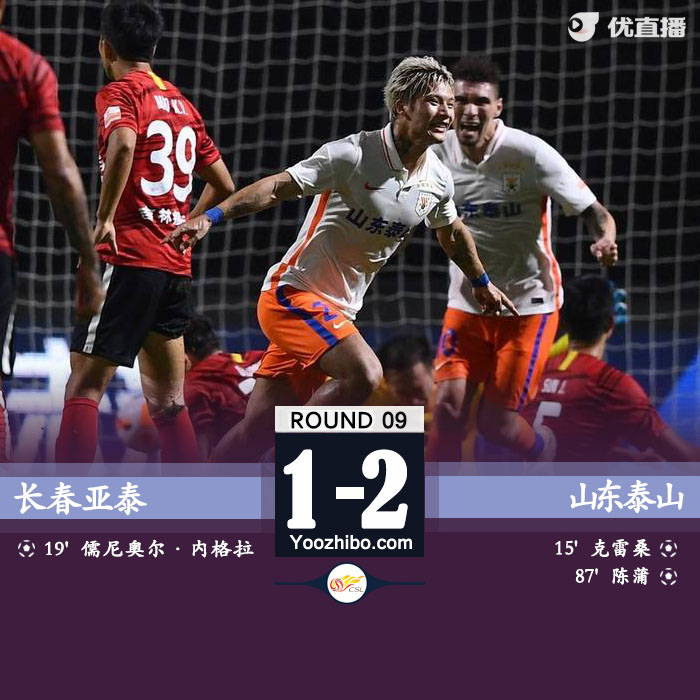 24直播网7月6日讯 北京时间7月6日晚19点30分,2022赛季中超第一阶段第9轮展开角逐,长春亚泰对阵山东泰山。上半场克雷桑连场破门,儒尼奥尔扳平比分,下半场费莱尼头球中框,陈蒲替补绝杀。最终山东泰山2-1战胜长春亚泰,山东取得三连胜,亚泰四轮不败遭终结。