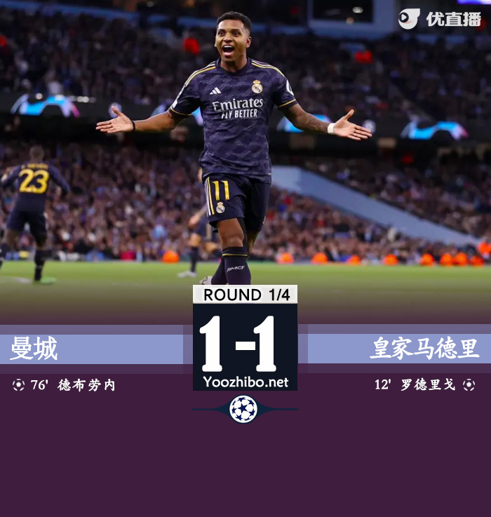 24直播网讯:北京时间4月18日欧洲冠军联赛 1/4决赛次回合,曼城主场对阵皇家马德里。上半场,罗德里戈两连击破门,哈兰德头球攻门击中横梁,德布劳内远射被扑,格拉利什抽射变线偏出,德布劳内角球直奔球门被卢宁指尖扑出;下半场,格拉利什凌空斩被挡,格拉利什扣过防守抽射还是被封堵,德布劳内小角度劲射入网,德布劳内迎球推射稍稍高出;加时赛阶段,沃克精彩完成对维尼修斯的单防,吕迪格近距离打门踢偏,卡瓦哈尔出现抽筋情况被换下;点球大战阶段,卢宁两度扑点帮助球队赢下比赛。最终比分曼城 3-4 皇马。两回合总比分曼城7-8皇马。